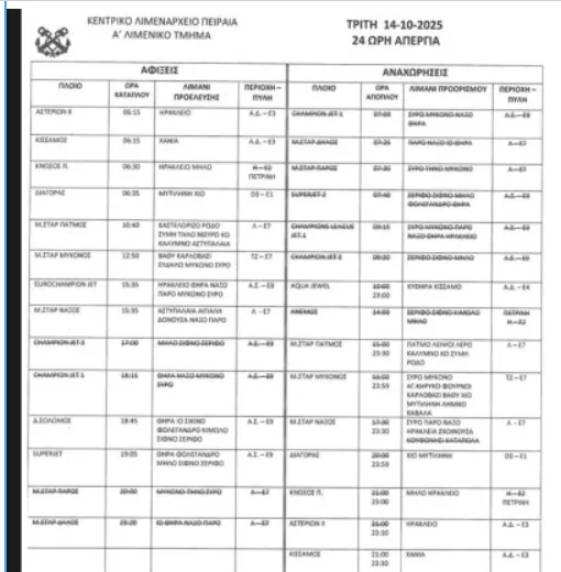 Τα αυριανά τροποποιημένα δρομολόγια από το Κεντρικό Λιμεναρχείο Πειραιά: