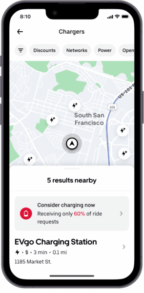 Η Uber επεκτείνει επίσης τη λειτουργία ταιριάσματος με βάση την μπαταρία σε περισσότερες μάρκες ηλεκτρικών οχημάτων. Η λειτουργία φιλτράρει τα αιτήματα διαδρομών με βάση το επίπεδο μπαταρίας ενός ηλεκτρικού οχήματος, ώστε οι οδηγοί να μπορούν να αποδέχονται διαδρομές που τελειώνουν κοντά σε φορτιστή ή να αποφεύγουν διαδρομές που χιλιομετρικά δεν καλύπτονται από την αυτονομία της μπαταρίας τους. Η λειτουργία λανσάρεται τώρα στις ΗΠΑ, τον Καναδά και την Ευρώπη, ενώ θα υποστηρίζει πλέον ηλεκτρικά οχήματα από Kia, Hyundai, Ford, Nissan, Volkswagen και Mercedes-Benz.