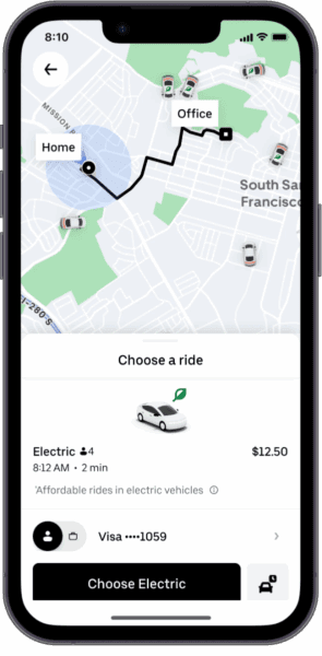Νωρίτερα φέτος, η Uber ανακοίνωσε ότι το Uber Green, το προϊόν ridehailing της εταιρείας για ηλεκτρικά και υβριδικά οχήματα, θα γίνει χαρακτηριστικό αποκλειστικά για ηλεκτρικά οχήματα. Προηγουμένως, το Uber Green περιλάμβανε τόσο ηλεκτρικά όσο και υβριδικά οχήματα, προσφέροντας μια επιπλέον χρέωση ανά διαδρομή (συνήθως 1 δολάριο) σε οδηγούς που χρησιμοποιούσαν οποιοδήποτε όχημα με λιγότερη ρύπανση από τις εξατμίσεις. Πλέον, υπό την επωνυμία Uber Electric, η εταιρεία προσφέρει εκπτώσεις στους επιβάτες 20%, ή έως 8 δολάρια έκπτωση, για διαδρομές με ηλεκτρικά οχήματα με τον κωδικό GOELECTRIC20. Η προσφορά ισχύει για επτά ημέρες.
