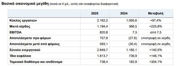 Κατά τη χρήση 2025, η εταιρεία κατέγραψε σημαντική ενίσχυση των οικονομικών της μεγεθών. Συγκεκριμένα: