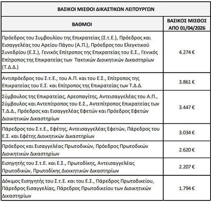 Το όριο των Δικαστικών Λειτουργών και του κύριου προσωπικού του Ν.Σ.Κ., διαμορφώνεται σε 8.846,40 ευρώ.